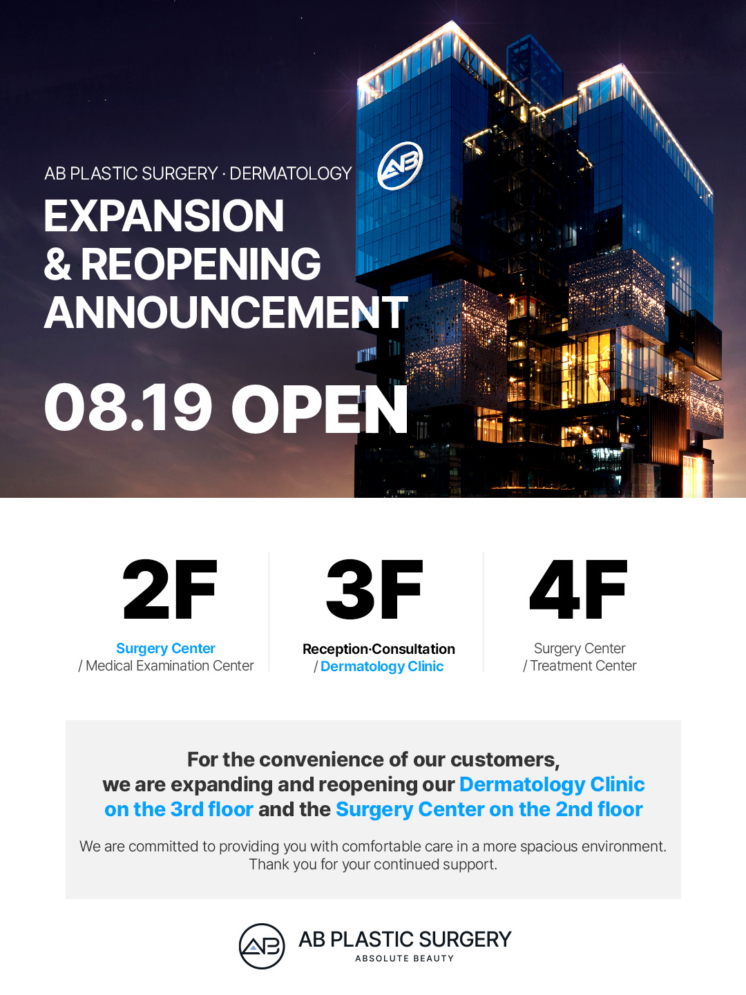 Medical Institution : AB Plastic Surgery 2~4F BLOCK 77 Building, 17, Seocho-daero 77-gil, Seocho-gu, Seoul, Korea (Line No.2, Gangnam Station, Exit No.10)