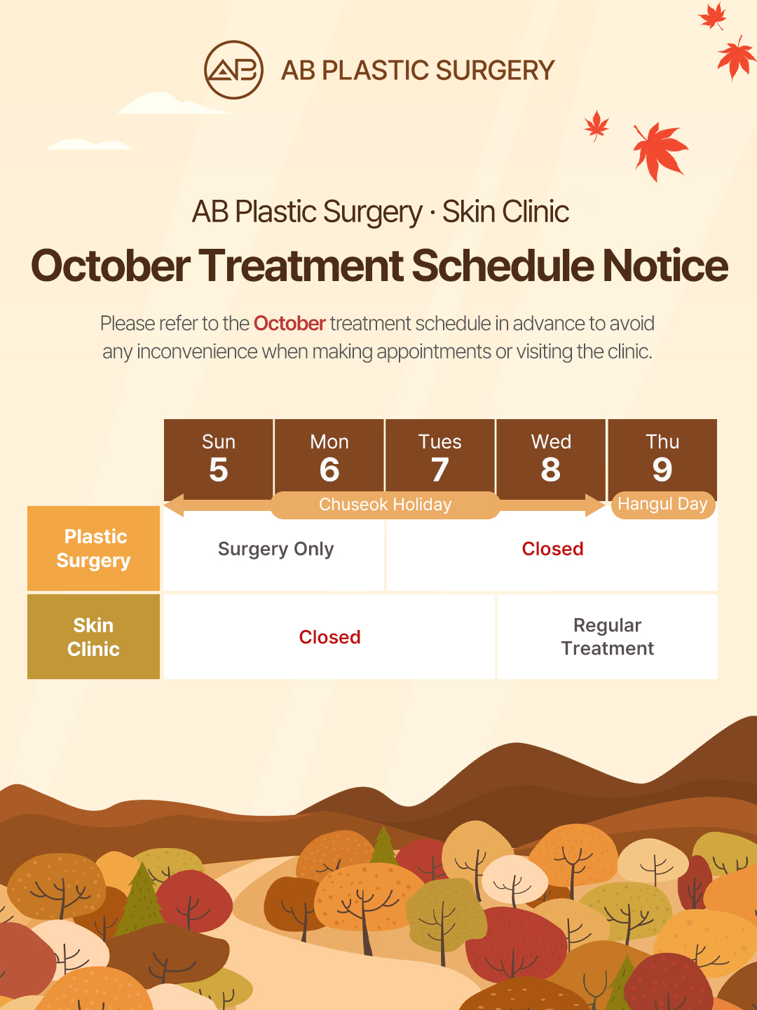 🍂✨ AB October Schedule Notice ✨🍂