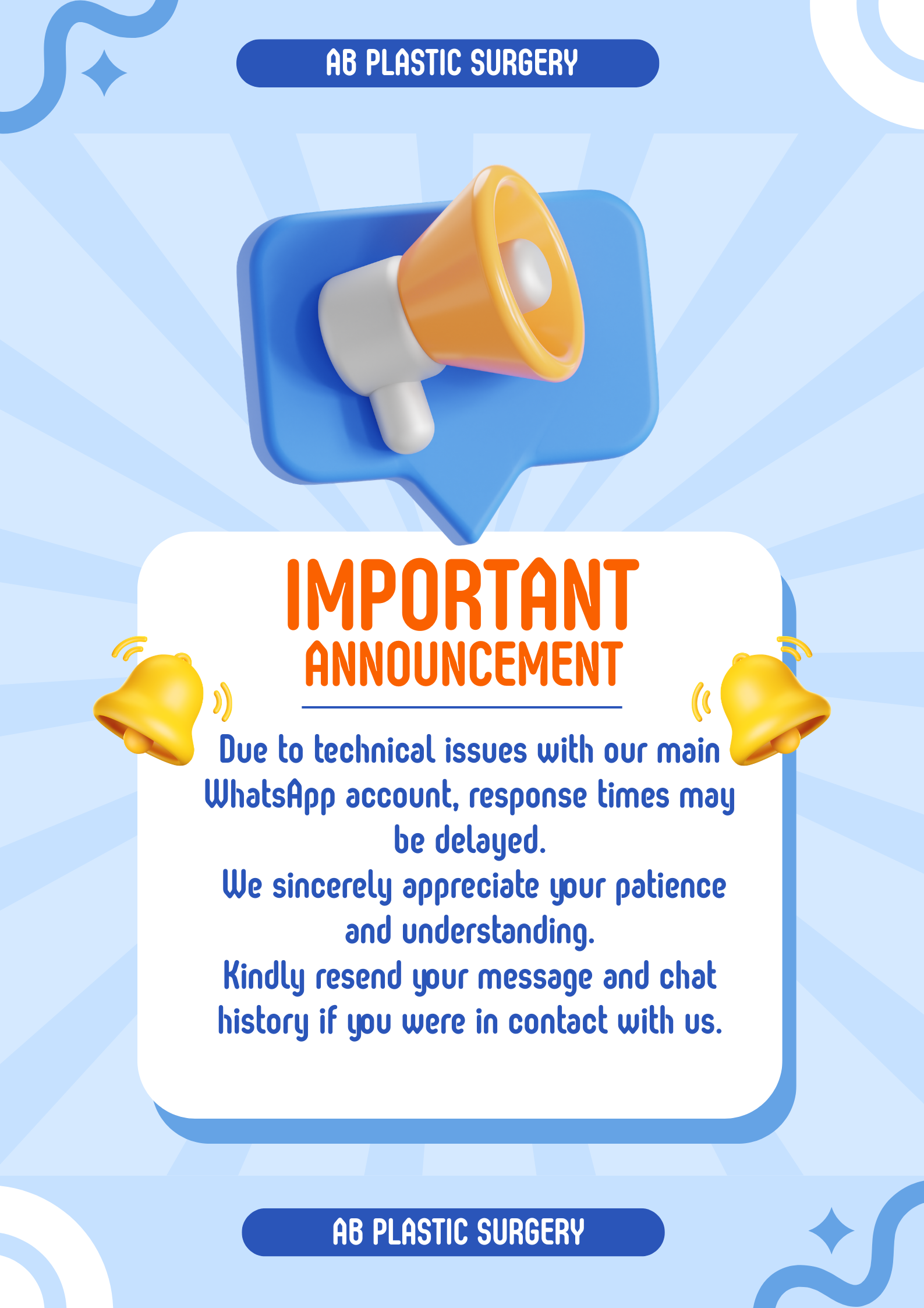 We are currently experiencing technical issues with our main WhatsApp account. As a result, replies may be delayed.