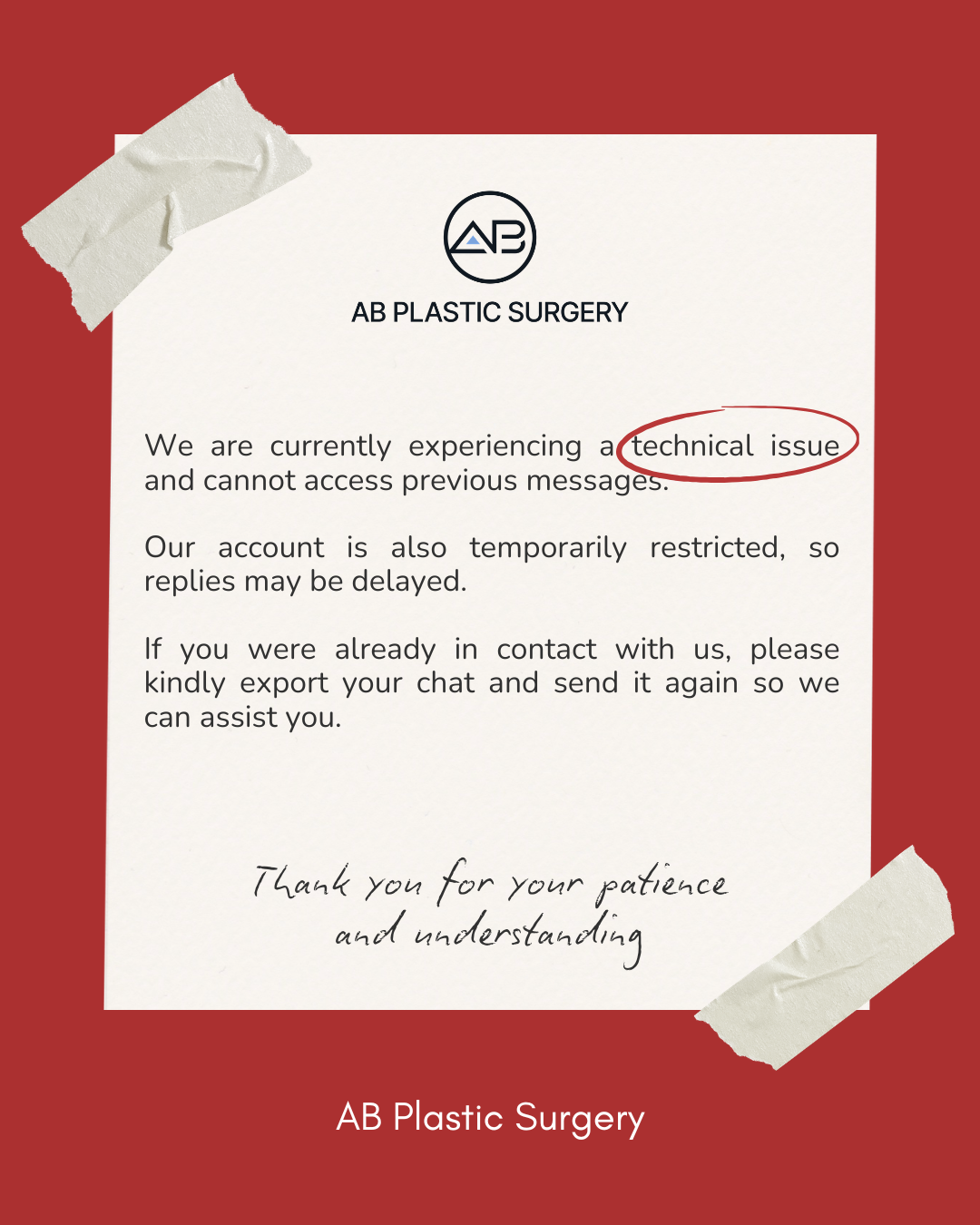 We are currently experiencing a technical issue with our WhatsApp account. Due to this, we are unable to access previous messages and conversations.