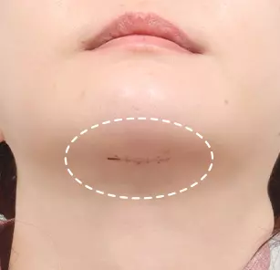 Since the incision for submentoplasty is made under the chin where it is not easily visible, the scar is barely noticeable from the front.Barely unnoticeable scar from the front
