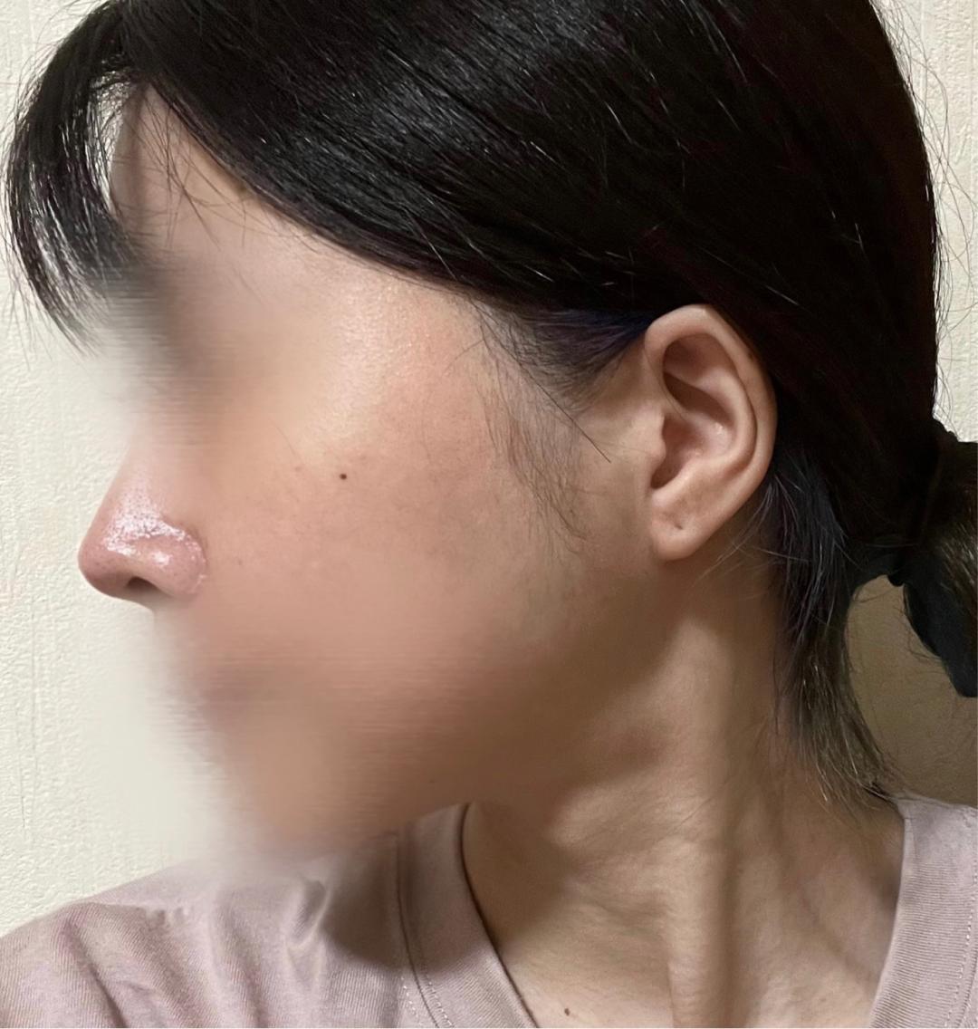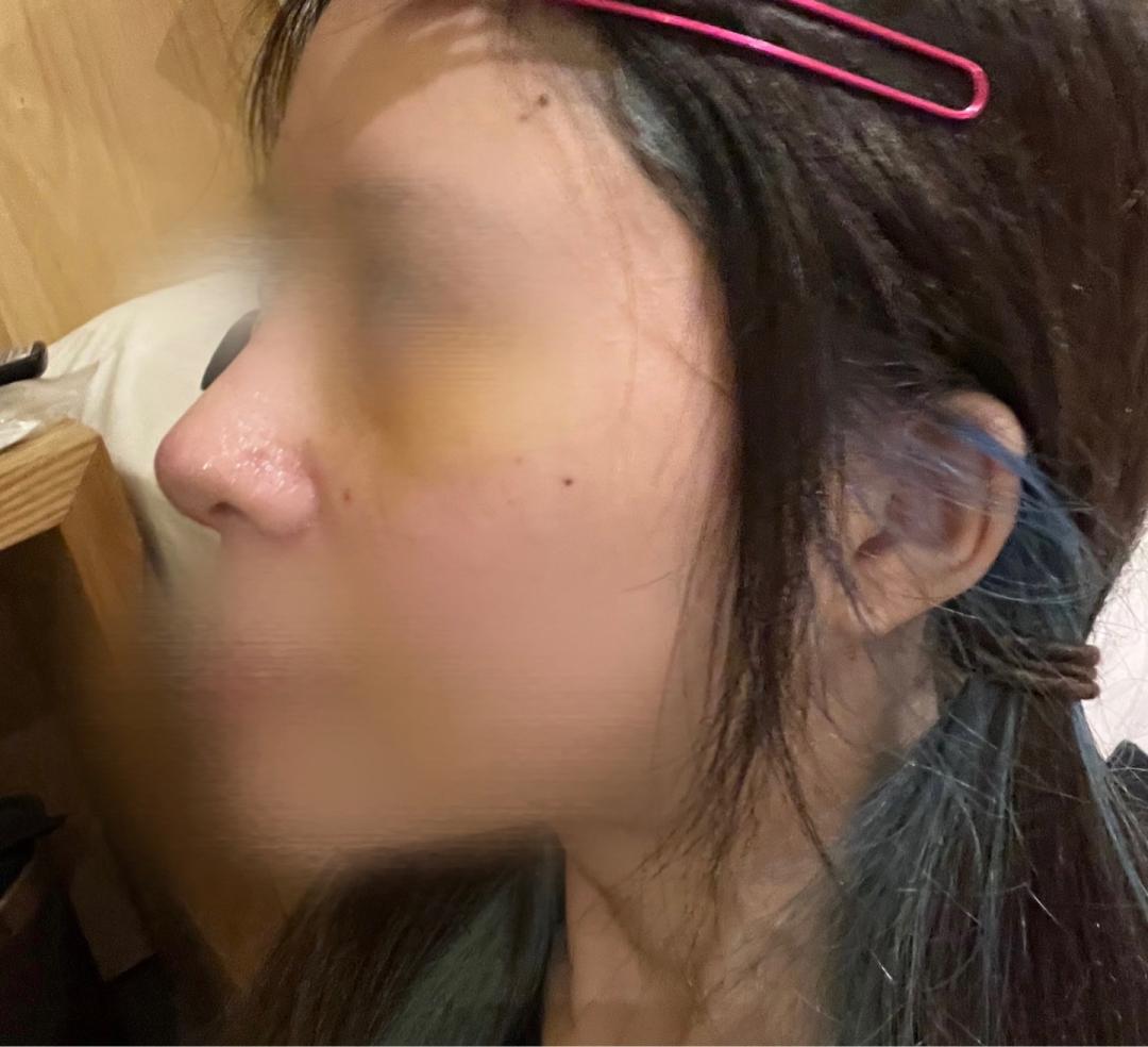 On the seventh day after the splint was removed, swelling was still severe, and I felt that the nose looked round and large from the front. However, since a 6mm implant and rib cartilage were used, the bridge height was well defined when viewed from the side, and the crookedness had been improved.