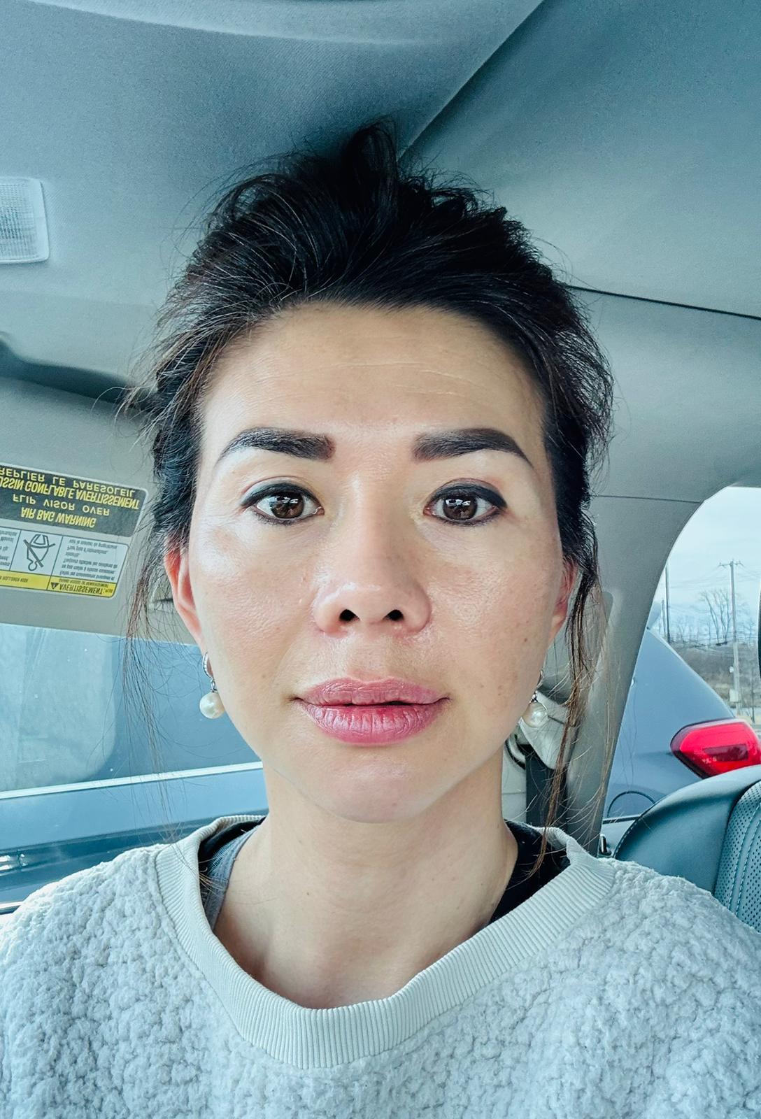 My recovery is going well. My face still feels very tight from the facelift, and I cannot smile fully yet. The scars on my temples are getting darker, but that’s to be expected. I was told the scars will lighten and fade over time. My chin still feels numb, but I’m able to open my mouth a little wider after 30 days. I hope to look more natural and have a more natural smile within the next 30 days.