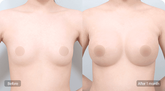 To prevent implant displacement or an unnatural appearance, surgical dissection and implant placement are customized based on each patient’s skin thickness, degree of breast ptosis, and the distance between the inframammary fold and the nipple.